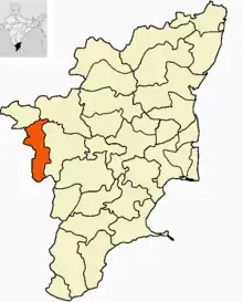 ![]() Location of Coimbatore district before the segregation of six taluks to form Erode district | |||||||||