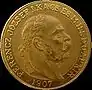 | 10 K | 19.0 mm | 0.9 mm | 3.39 g | 900‰ gold | ornament | "FERENCZ JÓZSEF I.K.A.CS. ÉS M.H.S.D.O.AP.KIR.", standing I. Ferenc József | Middle Coat of Arms with angels, value, mintmark | 1892 | ||