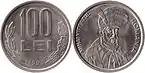 100 lei | 29 mm | 8.75 g | Nickel-plated steel | "ROMANIA *** ROMANIA *** ROMANIA ***" | Value, oak leaves, olive leaves, year of minting | Mihai Viteazul, state title, "MIHAI VITEAZUL" | 1 December 1991 | 1 January 2007 | Indefinite |