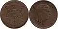 1 leu | 21 mm | 3.5 g | Copper 75%, Nickel 25% | Milled | "BUN PENTRU 'VALUE'" ("Good for 'value'"), wheat wreath | State title, Middle coat of arms, ***, year of minting, *** | 1924 | 1 June 1940 | 31 March 1941 (unofficial, BNR accepted the change until mid-1942) |