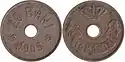 5 lei | 21 mm | 3.5 g | Copper 79%, Zinc 20%, Nickel 1% | Milled | Value Lesser coat of arms, six five-pointed stars | "MIHAI I REGELE ROMANIEI" ("Michael I King of Romania"), effigy of the King, year of minting | 1930 | 1 January 1938 | April 1943 |