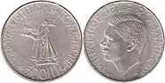 200 lei | 24 mm | 6 g | silver 0.835 | NIHIL + SINE + DEO | "MIHAI I REGELE ROMANILOR" ("Michael I of Romania King of Romania"), effigy of the King | 1942 | |||