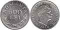 500 lei | 24 mm | 1.5 g | aluminium | "MIHAI I REGELE ROMANILOR" ("Michael I of Romania King of Romania"), effigy of the King | 1946 | 15 August 1947 | 15 August 1947 | ||