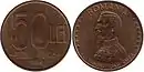 50 lei | 26 mm | 5.9 g | Value, olive leaves, year of minting | Alexandru Ioan Cuza, state title, "ALEXANDRU IOAN CUZA" | 9 September 1991 | ||||