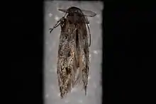 Adults are similar to Coleotechnites milleri.[3] They are on wing from June to August.