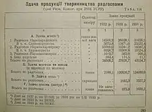 After grain collection difficulties in 1927 and 1928, Stalin ordered the creation of state grain and meat enterprises – sovkhozes - which, accordingly to his initial vision, should deliver more than 100 million of poods of grain in 1932. However, in 1932 their production results were disastrous because of poor general and agricultural management and planning, despite the significant (as compared to kolkhozes) amount of modern agricultural mechanisms (agricultural tractors, harvesters, etc.) employed.[46] But the biggest reason was that they continually seed wheat from 1929 on the same areas and even without fertilizers. Sovkhozes also suffered from a lack of manpower and infrastructure (roads, elevators etc.). Losses during harvesting were extremely high.[18] Thus despite an expected 290 million poods (more than 5 million tons) in 1932, sovkhozes produced 5 time less, while the situation with livestock was even worse.[17] As of July 20, 1932 sovhozes of the Ukrainian SSR had only logged a mere 16% of the defined sawing area.