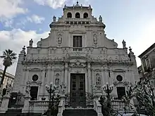 San Sebastiano is a Baroque-style, Roman Catholic collegiate basilica church located on Piazza Lionardo Vigo in central Acireale in the region of Sicily of Italy. The church became collegiate in 1924; and basilica in 1990.