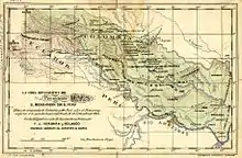 Then, two negotiations took place between both countries: between the Peruvian ministers Matías León and Agustín Guillermo Charún, and the Ecuadorians José Félix Valdivieso and Bernardo Daste, which failed. However, its importance lies in the fact that for the first time Peru based its rights over Maynas invoking the Royal Decree of 1802 (then lost) and the self-determination of peoples, as it would also do in future negotiations with Colombia.[43]