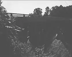 Colwell Cut Viaduct, also known as Hogback Hill Bridge, is a historic concrete arch bridge located at Mahoning Township in Armstrong County, Pennsylvania. It was built in 1922, and is a 220-foot-long (67 m) three-span bridge, with a 128-foot-long (39 m) main span. It crosses the Pittsburg and Shawmut Railroad.[2]