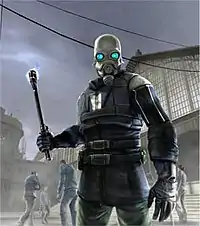 The Combine's first appearance is in Half-Life 2. Through the early stages of the game, Combine Civil Protection units pursue Gordon Freeman, the player character, through City 17 after Gordon’s presence is mistakenly revealed to Dr. Breen. Due to Gordon’s actions in Half-Life and his subsequent disappearance, which earned him a legendary reputation, Dr. Breen sees Gordon as a significant threat.[20] As Gordon flees the city, Civil Protection units raid the resistance base of Black Mesa East and capture resistance leader Eli Vance, who is transferred to holding facilities at Nova Prospekt.[19] Gordon, along with Eli’s daughter Alyx, breaks into the facility to rescue him, but Eli is teleported to the Combine Citadel by double agent Judith Mossman. The strike against Nova Prospekt prompts a revolution by the citizens of Earth and heavy street fighting takes place.[21]