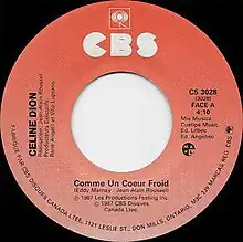 - ↑ Comme un cœur froid (Canadian 7" single liner notes). Celine Dion. CBS. 1988. C5 3028.