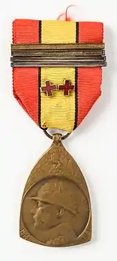 The Commemorative Medal of the 1914–1918 War (French: Médaille Commémorative de la Guerre 1914–1918, Dutch: Oorlogsherinnerinsmedaille 1914–1918) was a Belgian commemorative war medal established by royal decree on 21 July 1919 and awarded to all members of the Belgian Armed Forces who served during the First World War that were eligible for the inter-allied victory medal.[1]