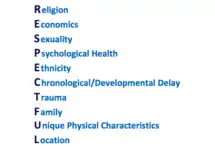 The Respectful Model is a holistic approach of understanding a community and its associated issues.[8] This form of counseling can be done individually or in groups across all ages and genders. The model is based on a ten-letter acronym designed to highlights factors that influence community dynamic. Counselors are expected to respect clients regardless of their religious affiliation, economic status, sexual orientation, psychological health, ethnicity, developmental differences, trauma, family, physical appearance, or genealogy. This inclusive and holistic approach to community counseling allows for an appreciation of environmental influence on mental health.[8]