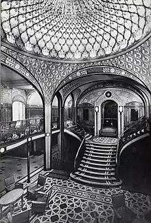 In 1912 the company put into service a new liner, SS France. Even though it remained clearly below its competitors in terms of size, it posted an average speed of 24 knots which was very appreciable at the time, and was 210 meters in length. Its luxury earned it the nickname "the Versailles of the Atlantic," and the ship quickly gained the loyalty of a wealthy clientele.[32] To appeal to less wealthy passengers, the company also launched new ships such as SS Chicago in 1908 and SS Rochambeau in 1911. Smaller and slower, these liners cost less to the company, which mainly operated them for migrants, to whom they often offered services superior to the larger liners of the time. This recipe quickly proved effective, and this type of vessels quickly established itself alongside larger, faster liners which formed the flagship of the fleet.[33]