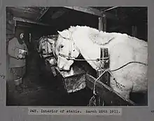 - ↑ Scott's diary, 22 Feb 1911 "The proper, as well as wiser, course for us is to proceed exactly as though this had not happened. To go forward and do our best for the honour of the country without fear or panic. There is no doubt that Amundsen's plan is a serious menace to ours. He has a shorter distance to the Pole by 60 miles— I never thought he could have got so many dogs safely to the ice. His plan for running them seems excellent. But above all he can start his journey early in the season—an impossible condition with ponies."