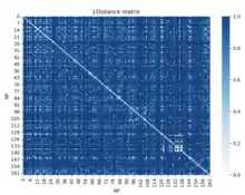One example of this in biology is used in the 3D mapping of a genome. Information of a mouse's HIST1 region of chromosome 13 is gathered from Gene Expression Omnibus.[30] This information contains data on which nuclear profiles show up in certain genomic regions. With this information, the Jaccard distance can be used to find a normalized distance between all the loci.