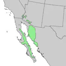 In Sonora, Mexico, the center of its range is opposite the species range in the Bajas, across the Gulf of California. The range in Sonora avoids the hottest Gran Desierto de Altar of Sonora in the northwest (about a sixth of Sonoran geography), and bitter condalia does not extend eastwards into the foothills of the northern Sierra Madre Occidental cordillera (about one third of Sonora).[1] The species is also recorded in locales of northern and central Sinaloa.[1]