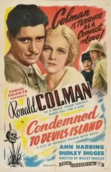 Condemned is a 1929 American pre-Code melodrama, directed by Wesley Ruggles, and starring Ronald Colman, Ann Harding, Dudley Digges, Louis Wolheim, William Elmer, and Wilhelm von Brincken. The movie was adapted by Sidney Howard from the novel by Blair Niles.