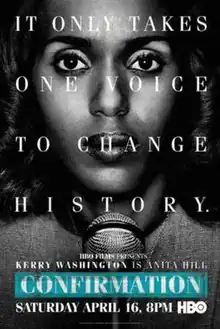 Confirmation is a 2016 American television political thriller film, directed by Rick Famuyiwa and written by Susannah Grant. It is about Clarence Thomas's Supreme Court nomination hearings, and the controversy that unfolded when Anita Hill alleged she was sexually harassed by Thomas. It stars Kerry Washington as Hill and Wendell Pierce as Clarence Thomas, with Erika Christensen, Jennifer Hudson, Greg Kinnear, Jeffrey Wright, Bill Irwin, and Eric Stonestreet in supporting roles. The film aired on HBO on April 16, 2016.[1]
