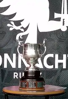 The Connacht School's Rugby Senior Cup is an annual rugby union schools competition organised by the Connacht Rugby Branch of the IRFU. Boys, usually of seventeen or eighteen years of age, compete for the cup with rival schools from within the province of Connacht. The competition was first held in 1913, with Garbally College, Ballinasloe the first Champions.