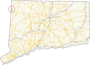 Route 361 was originally an alignment of Route 4 from Route 41 (and formerly U.S. Route 7) to the state line, where it continued as New York State Route 361 to the village of Millerton and U.S. Route 44.[4] In 1966, the Connecticut Department of Transportation decided to truncate Route 4 from the state line back to Sharon, and renumbered the stretch as Route 361 to match up at the state line.[2][5] In 1980, the New York State Department of Transportation decommissioned their alignment of Route 361 and turned it over to Dutchess County, which designated it as County Route 62.[6]