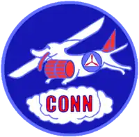 The most prominent icon representing the wing is the Connecticut Wing's patch, with an ultramarine blue background and bearing the image of its mascot, Connie the Search and Rescue Dog. The wing patch was required to be worn on the left sleeve of the battle dress uniform until 2006 when National Headquarters made it optional.[10] Each squadron also has a distinctive patch. A 2007 issue of Civil Air Patrol Volunteer magazine featured an image of all of Connecticut Wing's squadron patches surrounding the Wing patch.[11]