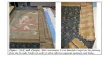 Before undertaking conservation, it is important for conservators to take into consideration the iconographic content and social significance. Ideally, no aspect of the treatment must compromise the original purpose of the object. To acquire and apply this attitude of respect requires extensive research into the cultural significance of the object to be treated and the materials and methods of its construction. Such research requires informants from the culture, both artists and religious authorities. Conservators need also to recognize that the brocade and the mounting technique are integral to the piece, and must retain these elements as much as possible.[3]