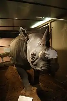 Rhinoceros specimen with missing horn due to theft