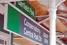 Conservatory–Central Park Drive is a station on the Chicago Transit Authority's 'L' system, serving the Green Line. The station opened on June 30, 2001.[2] It is located in the East Garfield Park neighborhood and named for the Garfield Park Conservatory just outside the station.