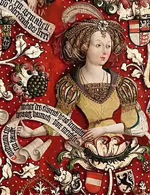 ![]() Portrait in the Babenberg pedigree, Klosterneuburg Monastery | |