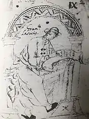 Constantine Lascaris writing his Grammatica as depicted by Pierre de Nolhac. (1887)