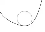 One speaks also of curves and geometric objects having k-th order contact at a point: this is also called osculation (i.e. kissing), generalising the property of being tangent. (Here the derivatives are considered with respect to arc length.) An osculating curve from a given family of curves is a curve that has the highest possible order of contact with a given curve at a given point; for instance a tangent line is an osculating curve from the family of lines, and has first-order contact with the given curve; an osculating circle is an osculating curve from the family of circles, and has second-order contact (same tangent angle and curvature), etc.[1]