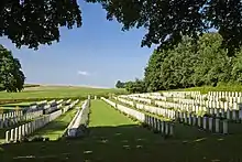 The Contay British Commonwealth War Graves Commission Cemetery is a war cemetery in the Somme region of France, near Franvillers. Located in the cemetery are 1133 deceased, First World War Casualties.[1] Designed by Sir Reginald Blomfield, it mainly holds dead from the Battle of Somme.[2] It is maintained by The Commonwealth War Graves Commission.[3]