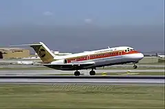 Flight 1713 was operated using a 21-year old McDonnell Douglas DC-9-14, a twin-engined, narrow-body jet airliner with the registration number N626TX.[1]: 7 The aircraft was equipped with two Pratt & Whitney JT8D-7B engines.[1]: 7 It was originally delivered to Air Canada in May 1966 and sold to Texas International Airlines in 1968, where it served the majority of its service until Texas International was acquired by Continental in 1982.[7][1]: 7 In 21 years of service, it had accumulated over 52,400 flight hours and over 61,800 cycles.[1]: 7
