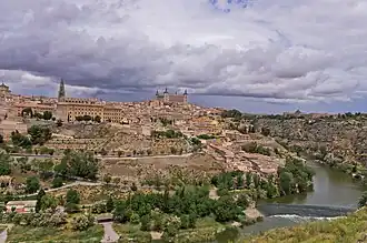 The first Clares settled in Toledo within the lifetime of St. Clare of Assisi herself. At the time they were known as Dianians, after the first place where the San Damiano convent of Assisi had been established. They settled on the outskirts of Toledo, in the district or valley of Santa Susana, where the Seismological Institute of Toledo and the Santa Casilda Asylum are located, since the Toledan jurisdiction ordered that no monastery or convent be established within the city, due to the scarcity of urban land and the massive agglomeration of its inhabitants. The Danaanites were ruled in Toledo by the Rule of Saint Benedict and were spiritually directed by the Franciscans of the city, although, as the historian María Luisa Pérez de Tudela pointed out, they lived according to the way of life of Saint Clare. In addition, that primitive convent was placed under the invocation of Saint Mary and Saint Damian. Some authors have stated that it was founded around 1250 with the permission of the archbishop of Toledo, Rodrigo Jiménez de Rada; the historian Pérez de Tudela has pointed out that if this is the case it would have been no later than 1247, the year in which the archbishop died abroad.[4] The historian Pérez de Tudela pointed out that the first document in which the convent is mentioned is in the testament granted in 1248 by the Archbishop Juan de Medina de Pomar, who succeeded Rodrigo Jiménez de Rada at the head of the archdiocese of Toledo, and where, along with some convents located in the interior of the city of Toledo, is referred to another of the minor friars located outside its walls: "et uni quos est extra muris, quod est Ordinis Minorum", which shows, according to the historian, that in 1248 the Poor Clares were already established in the Valley of Santa Susana.