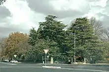 From the 1870s onwards a fine collection of exotic trees were planted including elms (Ulmus procera) and weeping Scotch elm (U.glabra 'Pendula' ), oaks (Quercus spp.), lindens (Tilia sp.), poplars (Populus sp.), redwoods or big trees (Sequoiadendron giganteum), cypresses (Cupressus sp.), firs (Abies sp.), ash (Fraxinus sp.), 4 Himalayan cedars (Cedrus deodara) and walnuts (Juglans sp.) are growing with two Bunya pines (Araucaria bidwillii) and one Tasmanian blue gum (Eucalyptus globulus). It also has a specimen of blue/Himalayan pine (P.wallichiana).[10][1]