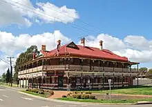 The town's broad main street, which has been restored, retains much of its old world charm with its wrought-iron verandahs and awnings. Various bric-a-brac, antique shops, tourist coffee lounge, and a modern bread bakery and cafe invite passing tourists to stop and explore the town. The Up-to-Date store, designed by architect William Monks,[8] has what is probably the only cash ball cash railway still in situ.[9] In 2017 a boutique cheese factory was opened on the main street, as a working tourist attraction, and selling various hard and soft cheeses made on the premises.
