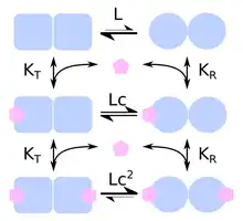 - ↑ Rubin MM, Changeux JP (November 1966). "On the nature of allosteric transitions: implications of non-exclusive ligand binding". Journal of Molecular Biology. 21 (2): 265–74. doi:10.1016/0022-2836(66)90097-0. PMID 5972463.