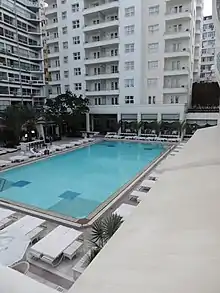 Copacabana Palace (currently branded as Copacabana Palace, A Belmond Hotel), is a hotel in the city of Rio de Janeiro, Brazil, facing Copacabana beach. Designed by French architect Joseph Gire, it was built in a style that follows the line and model of the great beach hotels of the nineteenth and early twentieth centuries, and opened on August 13, 1923.[1]