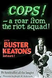 Cops is a 1922 American two-reel silent comedy film about a young man (Buster Keaton) who accidentally gets on the bad side of the entire Los Angeles Police Department during a parade and is chased all over town. It was written and directed by Edward F. Cline and Keaton.