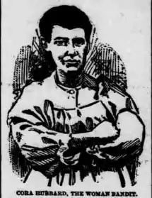 Cora Hubbard (February 1877 – 19??) was a 19th-century outlaw who participated in the August 17, 1897 robbing of the McDonald County Bank in Pineville, Missouri. Hubbard, who was compared at the time to the more prolific female outlaw Belle Starr, was one of only a handful of women who actively participated in the actual bank robbery process during that era.