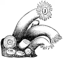 Not all reefs in the past were formed by corals: those in the Early Cambrian (542–513 Ma) resulted from calcareous algae and archaeocyathids (small animals with conical shape, probably related to sponges) and in the Late Cretaceous (100–66 Ma), when reefs formed by a group of bivalves called rudists existed; one of the valves formed the main conical structure and the other, much smaller valve acted as a cap.[31]