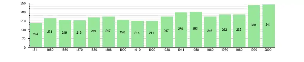 Corbières has a population (as of December 2020) of 919.[7] As of 2008, 6.2% of the population are resident foreign nationals.[8] Over the last 10 years (2000–2010) the population has changed at a rate of 18%. Migration accounted for 15.5%, while births and deaths accounted for 4.8%.[9]