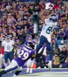 - ↑ Wyatt, Jim (September 30, 2018). "Titans WR Corey Davis Snatches Victory from Air with Game-Winning Catch in Overtime". Tennessee Titans. Retrieved September 30, 2018.