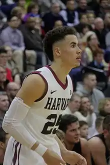 As a sophomore, Johnson averaged 8.2 points and 2.8 rebounds per game.[2] In the Ivy League season finale on March 3, 2018, Johnson led Harvard with 17 points in a 93-74 win over Columbia to give the Crimson the No. 1 seed in the Ivy League tournament. He shot 5 of 8 from behind the 3-point arc.[3] Johnson averaged 6.5 points and 2.9 rebounds per game as a junior.[2] As a senior, he averaged 3.4 points and 1.4 rebounds per game.[4]