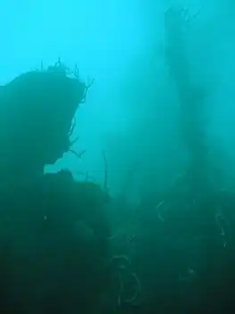 Coron Bay is famous for diving on ten Japanese shipwrecks. The ships Akitsushima, Okikawa Maru, Irako, Kogyo Maru, Olympia Maru, Taiei Maru, Kyokuzan Maru, East Tangat Gunboat and Lusong Island Gunboat were sunk on September 24, 1944, by the third air fleet of US Task Force 38.[1] The wrecks can be reached in a one-hour drive from Coron by dive boat. With the exception of the Lusong Island Gunboat, which partially breaks through the water surface and is therefore suitable for snorkelers, and the East Tangat Gunboat, which is suitable for beginners at a depth of 5 to 20 m, all other wrecks lie at depths of 20 to 45 m. Some of the wrecks are over 100 m long and have decks, corridors, galleys etc. that can be dived. Some equipment has been salvaged from some of the wrecks (e.g. the engine blocks removed), but there are still various equipment and some grenades there. Because of the depth and size of the sunk ships, nitrox is usually used for diving because of the longer no-stop time and shorter decompression stops.[2]