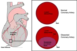 - ↑ "Coronary Artery Dissection: Not Just a Heart Attack". www.heart.org. Retrieved 2018-11-07.