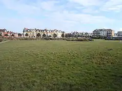 Coronation Gardens was built in 1938 at a cost of £10,000 and named to mark the coronation of George VI . The area occupied by the park had previously consisted of sand dunes and soil had to be imported to create a medium for plants to grow. The design also included a wall to keep out the tide.[4] The park was originally laid out with traditional ornamental flowerbeds and included a circular pathway and a cafe.[5]