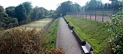 Other refurbishments include new benches, realignment of coping stones, resurfacing of pathways with tarmac and gravel for the broad walk and Italian gardens.[18] All water features have been cleaned and restored. The pools have been cleared and some de-silt work to the lakes has been carried out. Lake edges have been restored and a new cascade for the main lake dam have been created. Several new planting schemes around the park have been undertaken, including for the Italian Gardens.[18] The restored southern gatehouse and veranda now provides an office at the main entrance for the Park manager and Park Warden.[18] The restoration was performed by Casey's contractors under the management of Capita.[18]