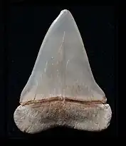 Its teeth can reach lengths up to 3.5 in (7.5 cm) and are found worldwide.[4] It is believed to be an ancestor to the great white shark, an argument supported by the transitional species Carcharodon hubbelli,[5][6] but as of 2021, no phylogenetic analyses have been done for proof.[3]